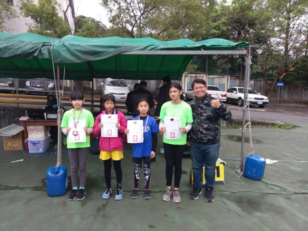 501吳怡蓉、502徐楷琳、402吳敏謙 榮獲國小女子新人 團體第一名